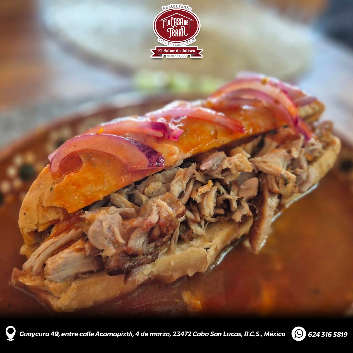 Somos un rincón de Jalisco en el corazón de Los Cabos, que inicia el 2 de noviembre del 2024. Nuestro restaurante nace del amor por la cocina tradicional jalisciense, esa que se prepara con paciencia, sazón heredado y orgullo por nuestras raíces. Creemos en el poder de la comida para reunir familias, despertar recuerdos y crear momentos inolvidables. Por eso, usamos ingredientes frescos, recetas auténticas y el toque casero que distingue a la cocina tapatía. Más que un restaurante, somos un homenaje a Jalisco: su sabor, su música, su gente.